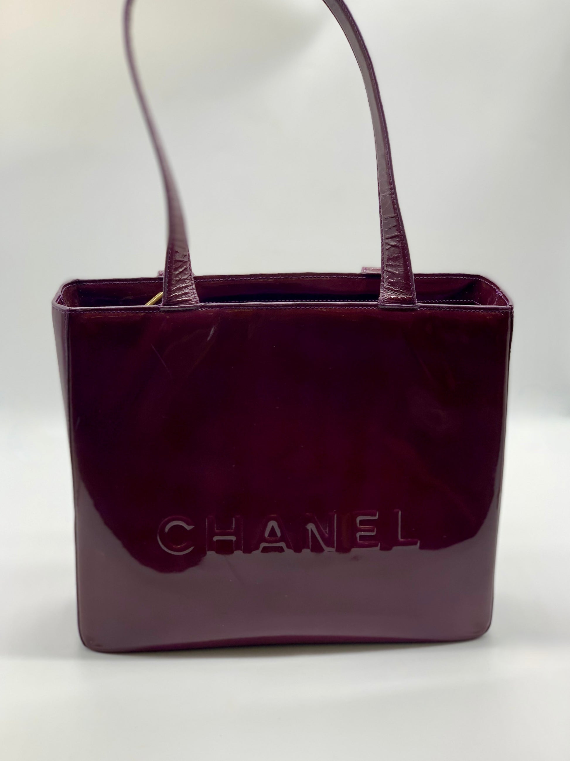 CHANEL Purple Patent Shoulder Vintage Handbag